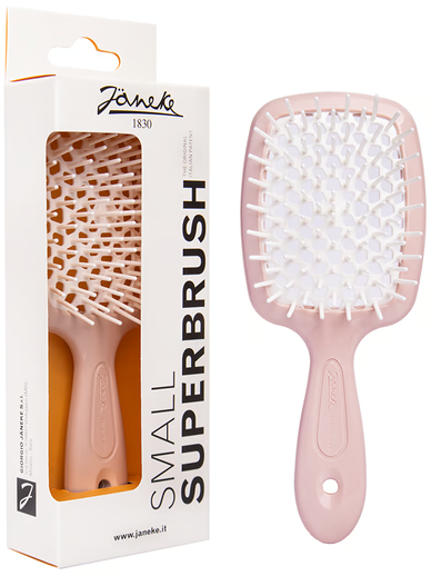 Janeke1830 Superbrush Small Powder-White Color — це компактна щітка для волосся італійського бренду Janeke 1830, що поєднує стиль, ергономіку та професійну ефективність. Її фірмова вентиляційна система забезпечує рівномірне розподілення тепла при сушінні феном, зберігаючи природну вологу волосся та запобігаючи ламкості.